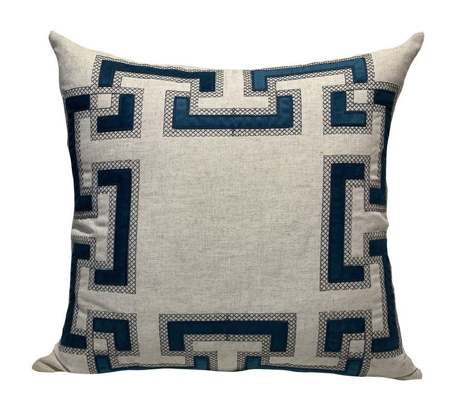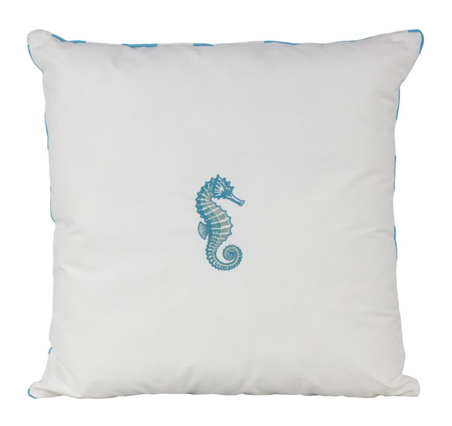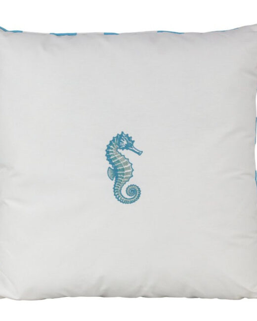 Almofada Acqua Off Cavalo Marinho Azul Bordada