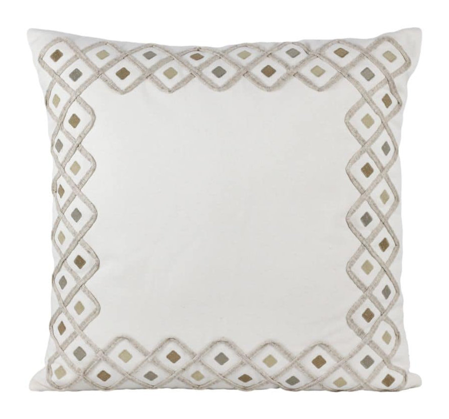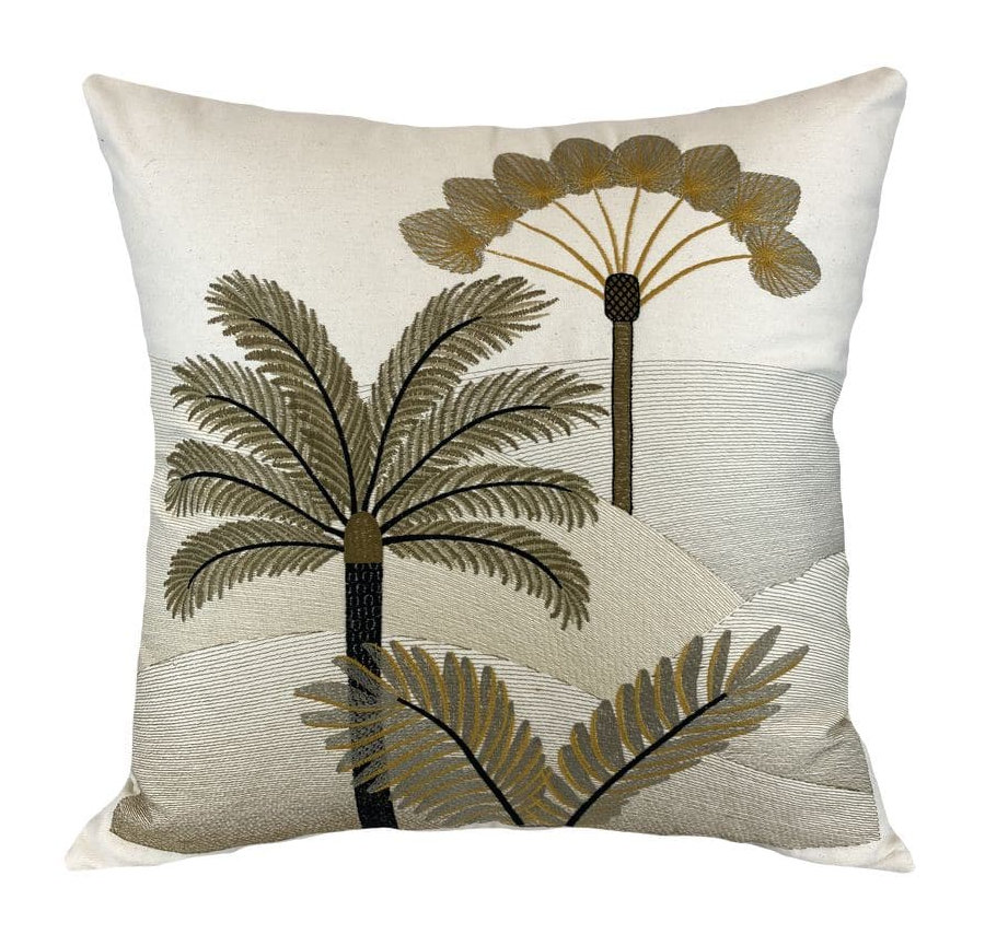 Almofada Sarja Bege e Preto Bordada