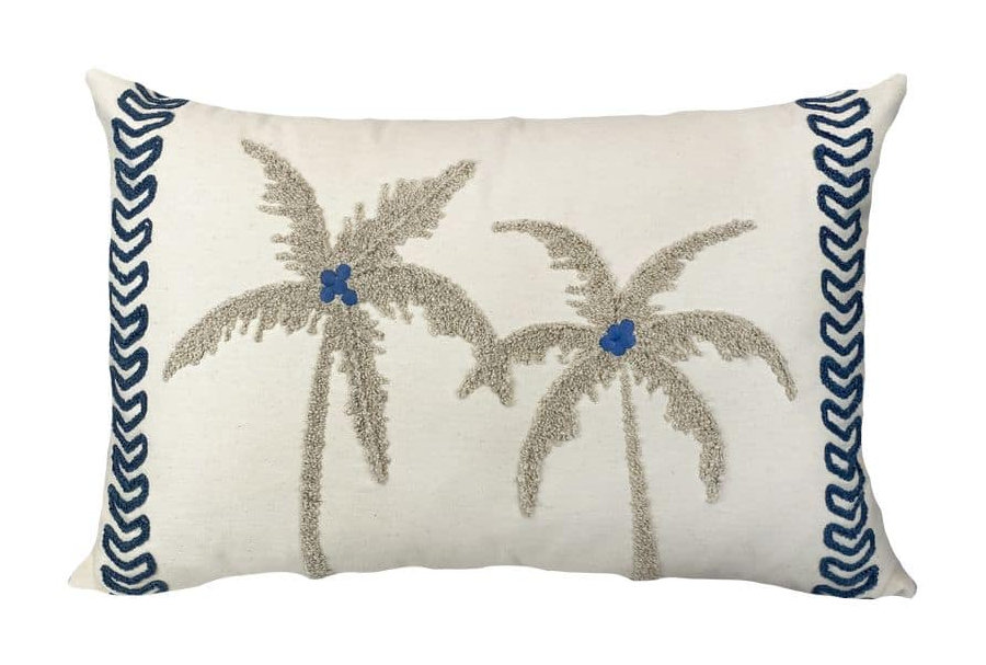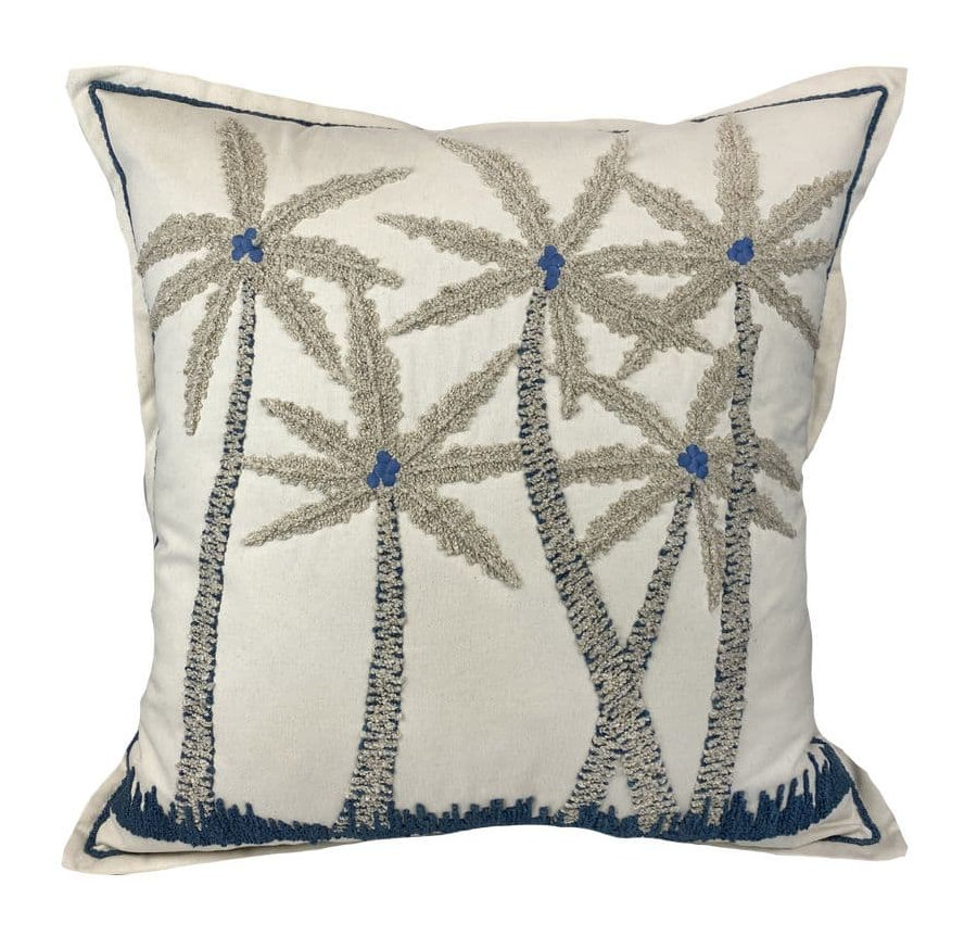 Almofada Sarja Coqueiro Azul Bouclé
