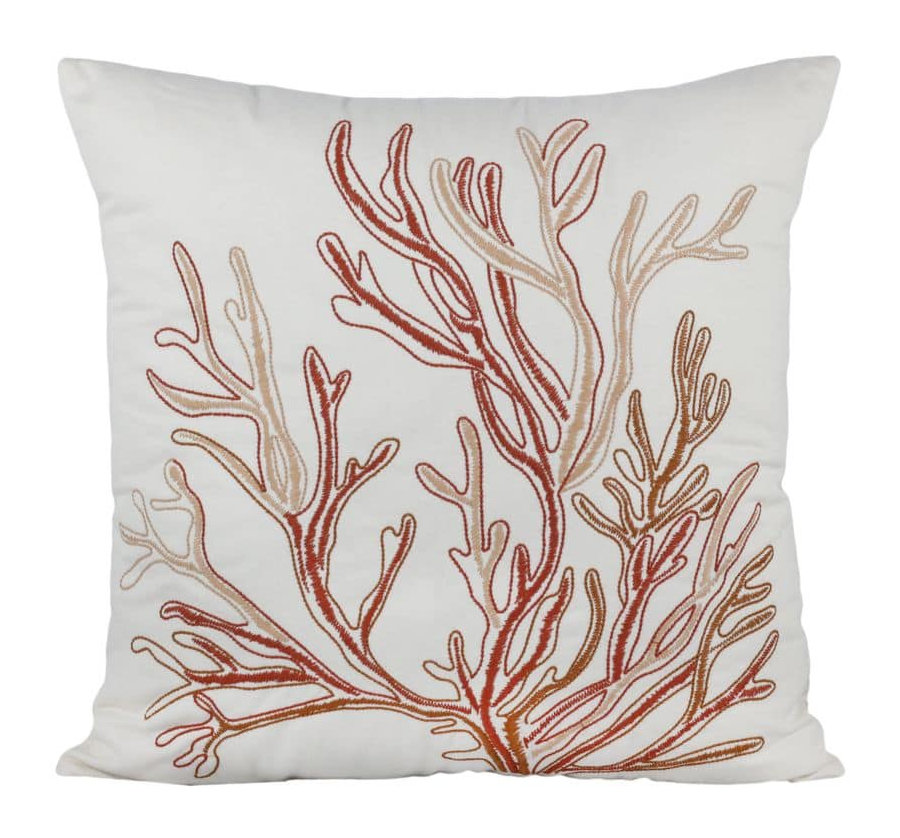 Almofada Sarja Coral Terracota Bordada