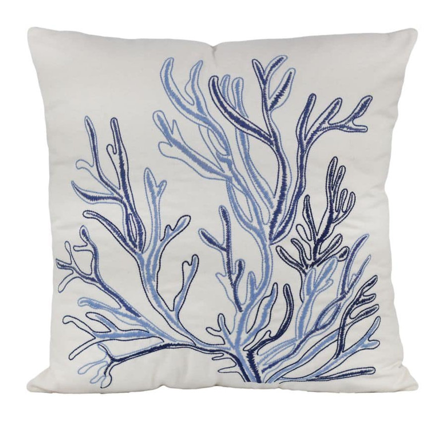 Almofada Sarja Coral Azul Bordada