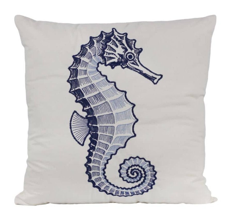 Almofada Sarja Cavalo Marinho Azul Bordada