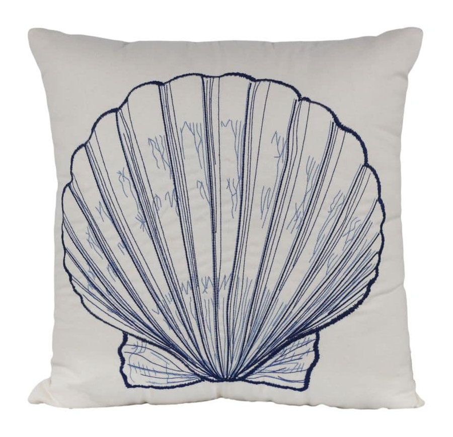 Almofada Sarja Concha Azul Bordada