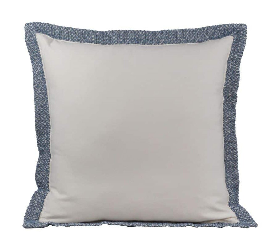 Almofada Sarja Off Borda Rendada Azul