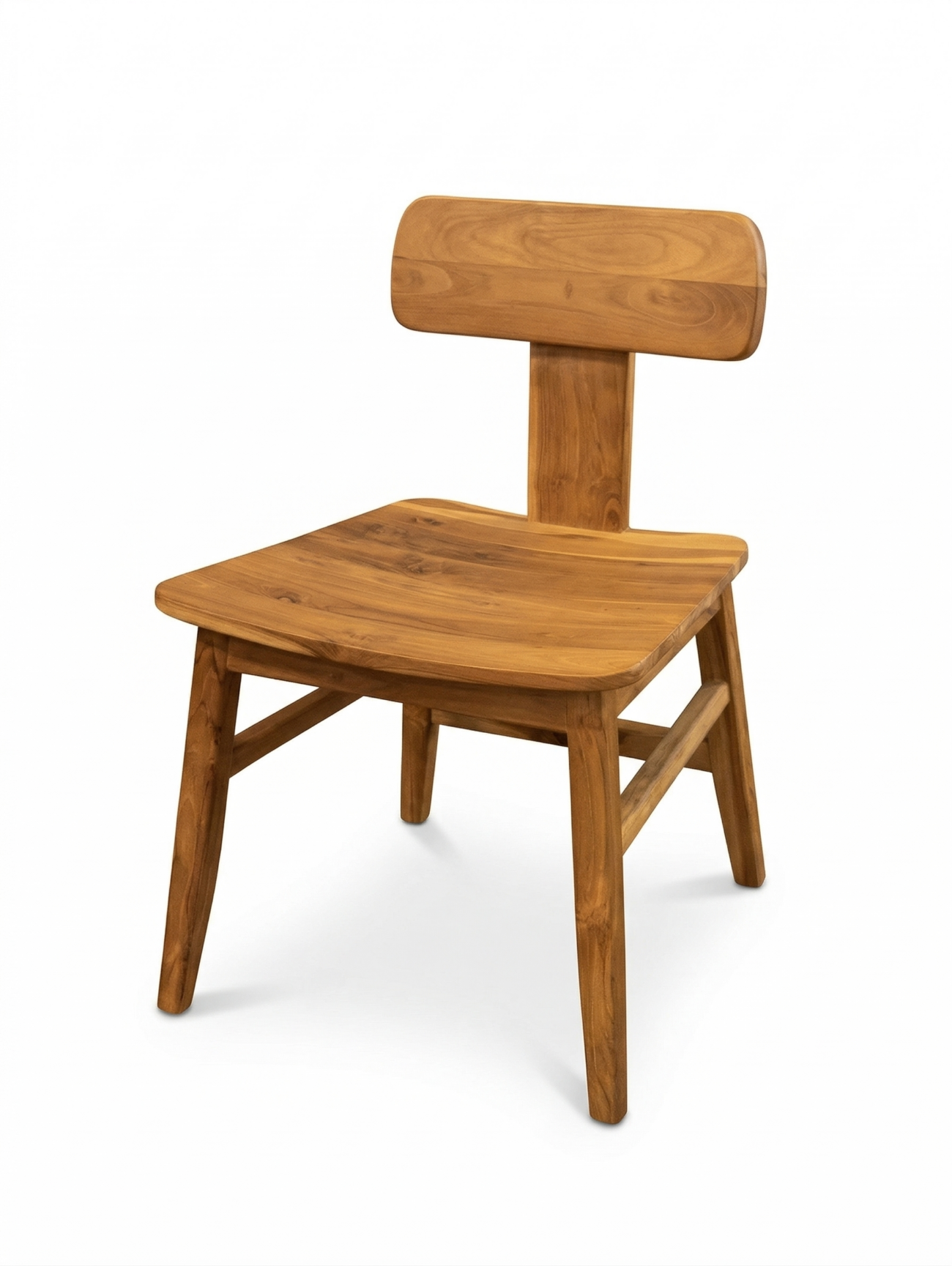 - Descrição: Esta cadeira é fabricada em madeira Teca maciça, apresentando um design minimalista com linhas limpas que destacam a beleza natural e a tonalidade mel dos veios da madeira indonésia. O acabamento acetinado oferece uma textura suave ao toque, enquanto sua estrutura robusta garante alta durabilidade e resistência.